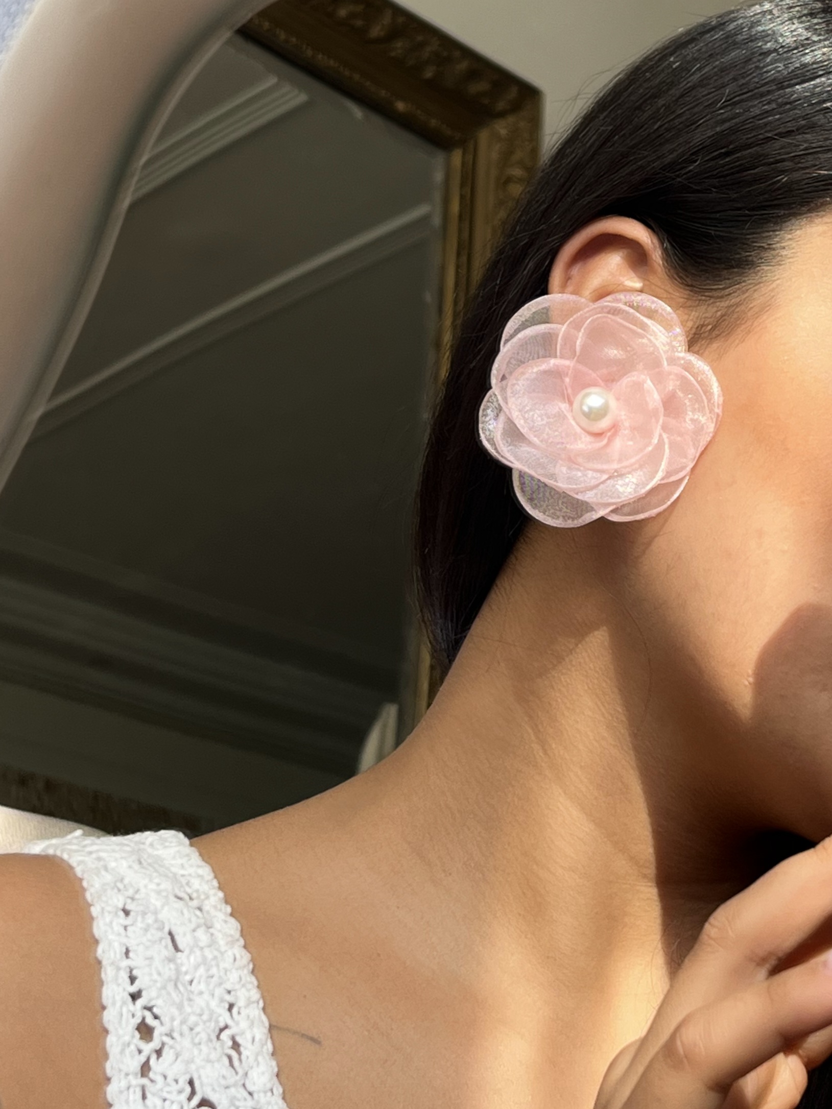 گوشواره گل مروارید دار